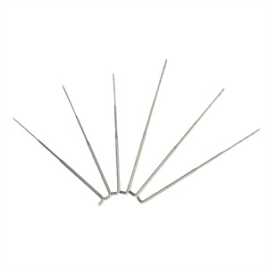 刺针用于在刺针机中机械粘合纤维无纺布。根据所用纤维原料及原体产品所需的特性,要采用不同 长度、工作部位形状及钩刺分布与性能的合适针型。